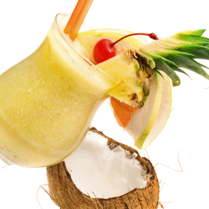 Directions: Toss drink ingredients into a blender & pulse until well-blended. Garnish with cherry, and slices of pineapple & lime. Serve & enjoy!