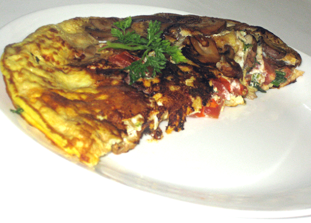 Goat Cheese, Mushroom, & Tomato Omelette with Fresh Chervil & Chives