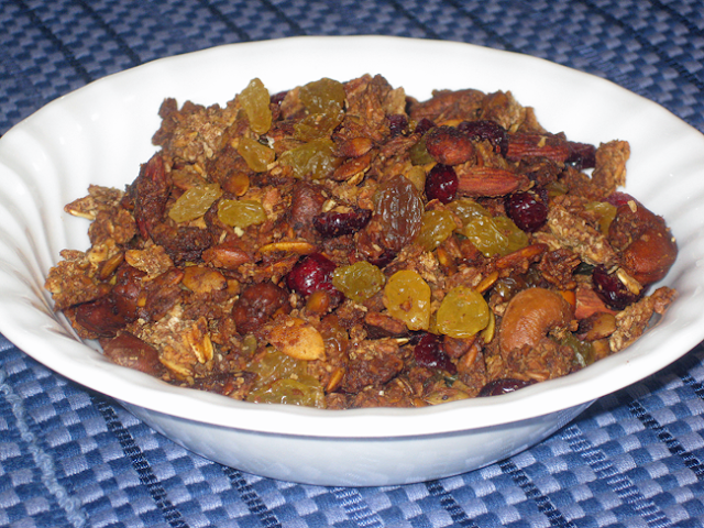 Variations: You could also add other types of nuts & dried fruits -- i.e., walnuts, hazelnuts, pecans, sliced dried apricots, apples, &/or peaches, etc. Or, all-natural, homemade banana chips, made in a dehydrator, i.e., without any refined sugar, would also work as well.